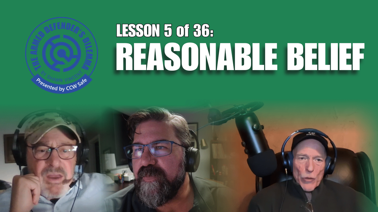 I want to underscore what you said about the distinction between a reasonable belief and a reasonable fear because, let’s just say it’s four o’clock in the morning and there’s somebody hammering on your front door, making the wall shake, and you’ve just been startled awake. It’d be reasonable that you’d be afraid in that circumstance, and it’d be reasonable that you’d be afraid that there’s someone very violent on the other side of that door. That reasonable fear does not translate to a reasonable belief that you are in imminent … meaning right now. Right now, unless you don’t have time to react and do anything else but protect yourself that you’re going to be ravaged and killed or beaten to a pulp, right? I think what some of the armed defenders that we’ve studied in these high profile cases have turned out badly is no one’s going to say that they weren’t reasonably afraid—just that their belief that the threat was imminent and deadly or life altering at that moment wasn’t reasonable. So I think when I discuss this throughout the 36 Lessons, except for to make this point, I’m going to use the term reasonable belief because I think if armed defenders think about that and adopt that instead of the idea of reasonable fear, it’s going to keep them out of trouble when that emotional response that you talked about hits them in a frightening situation.